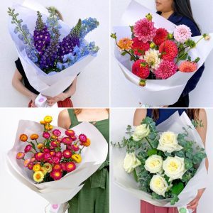 We create just one style of mixed bouquet to send each day. We like to keep things simple because it means less waste, less fuss and more flowers from local growers. Therefore the flowers we deliver will be a little different from the ones photographed (but they will be just as beautiful!)